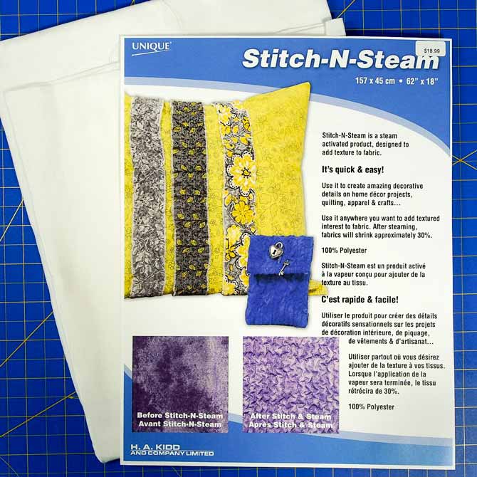 Stitch-N-Steam is a 100% polyester product that is activated by steam and used to add texture to any piece of fabric.