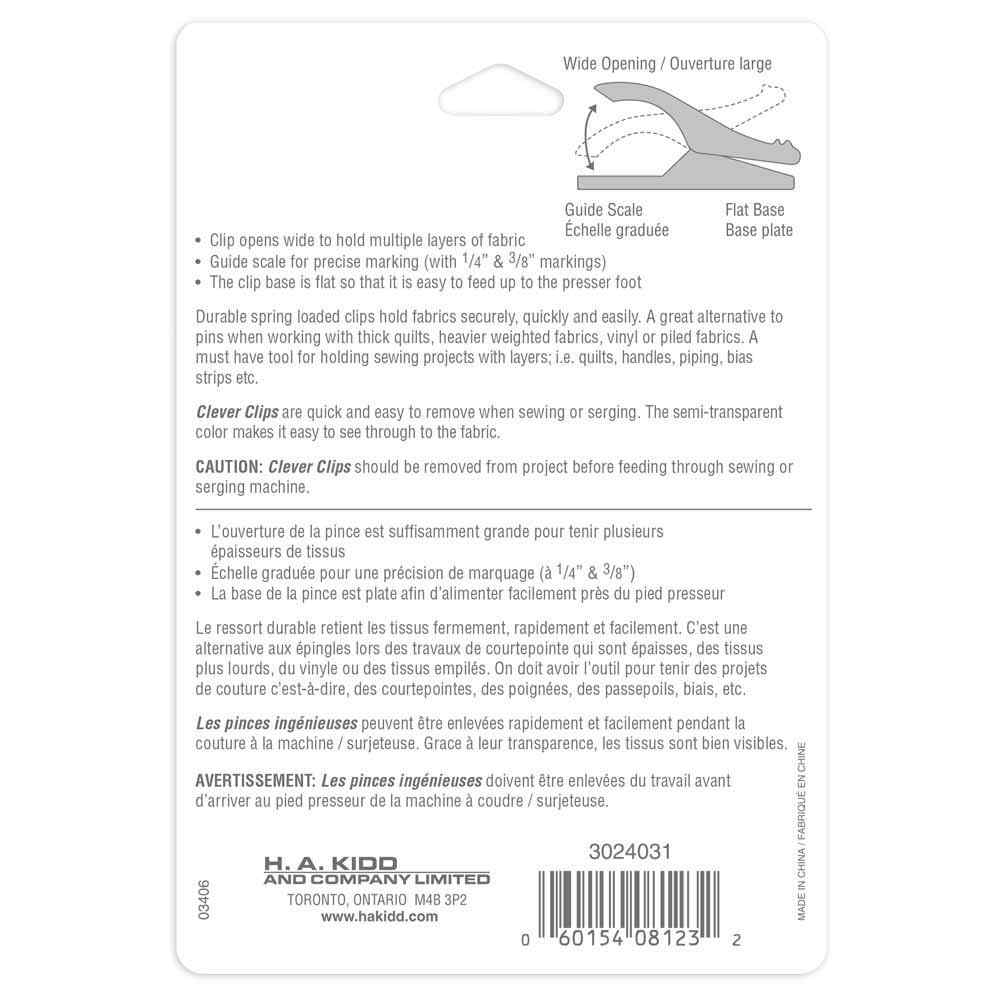 Contains 12 clever clips for quilting, knitting and crafting